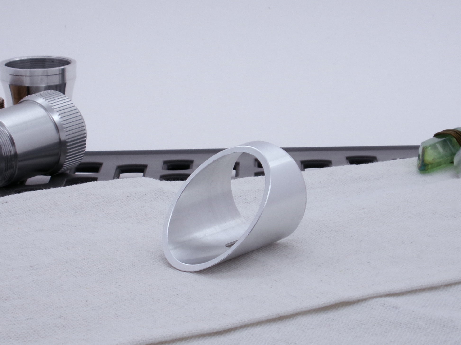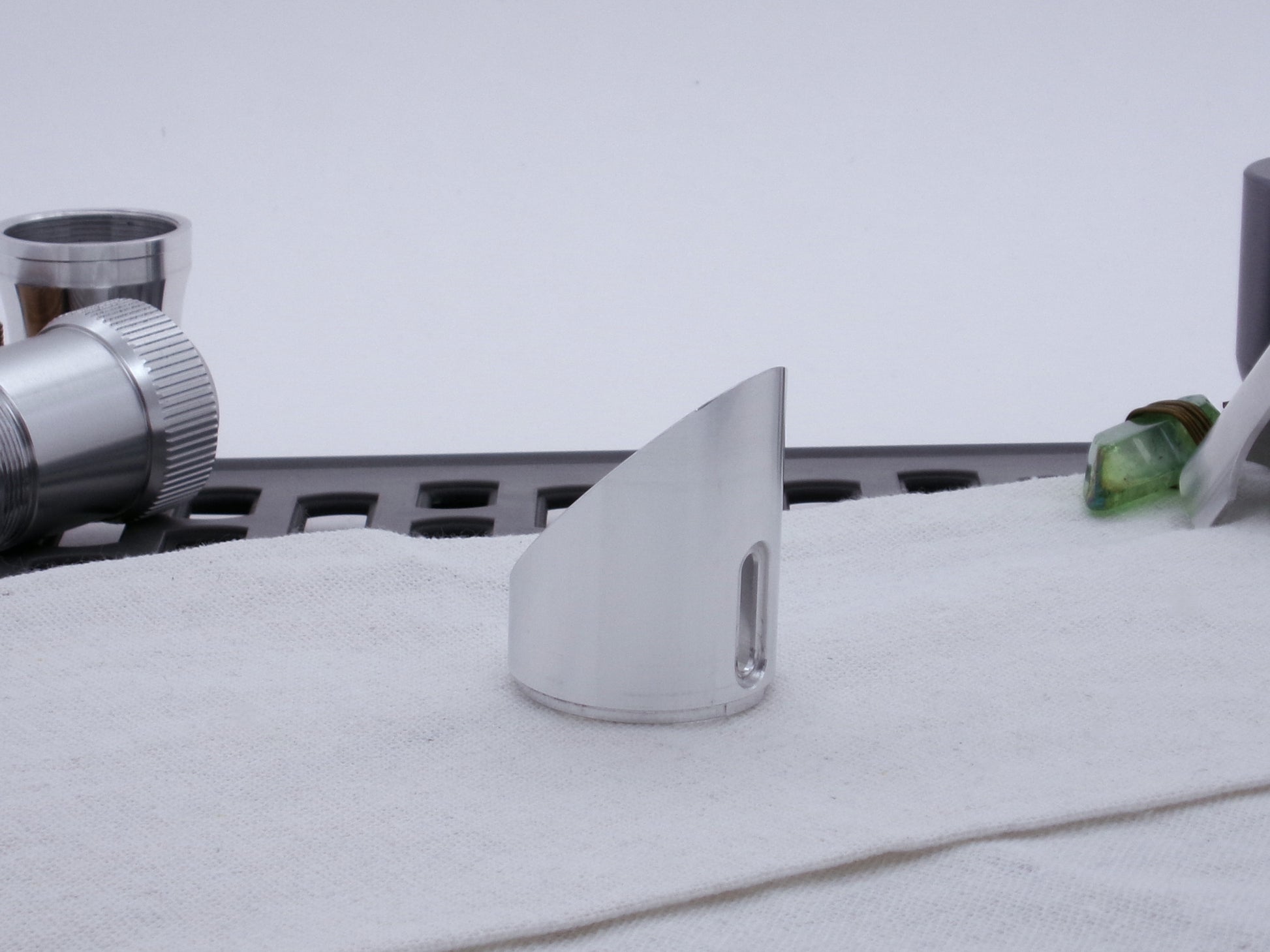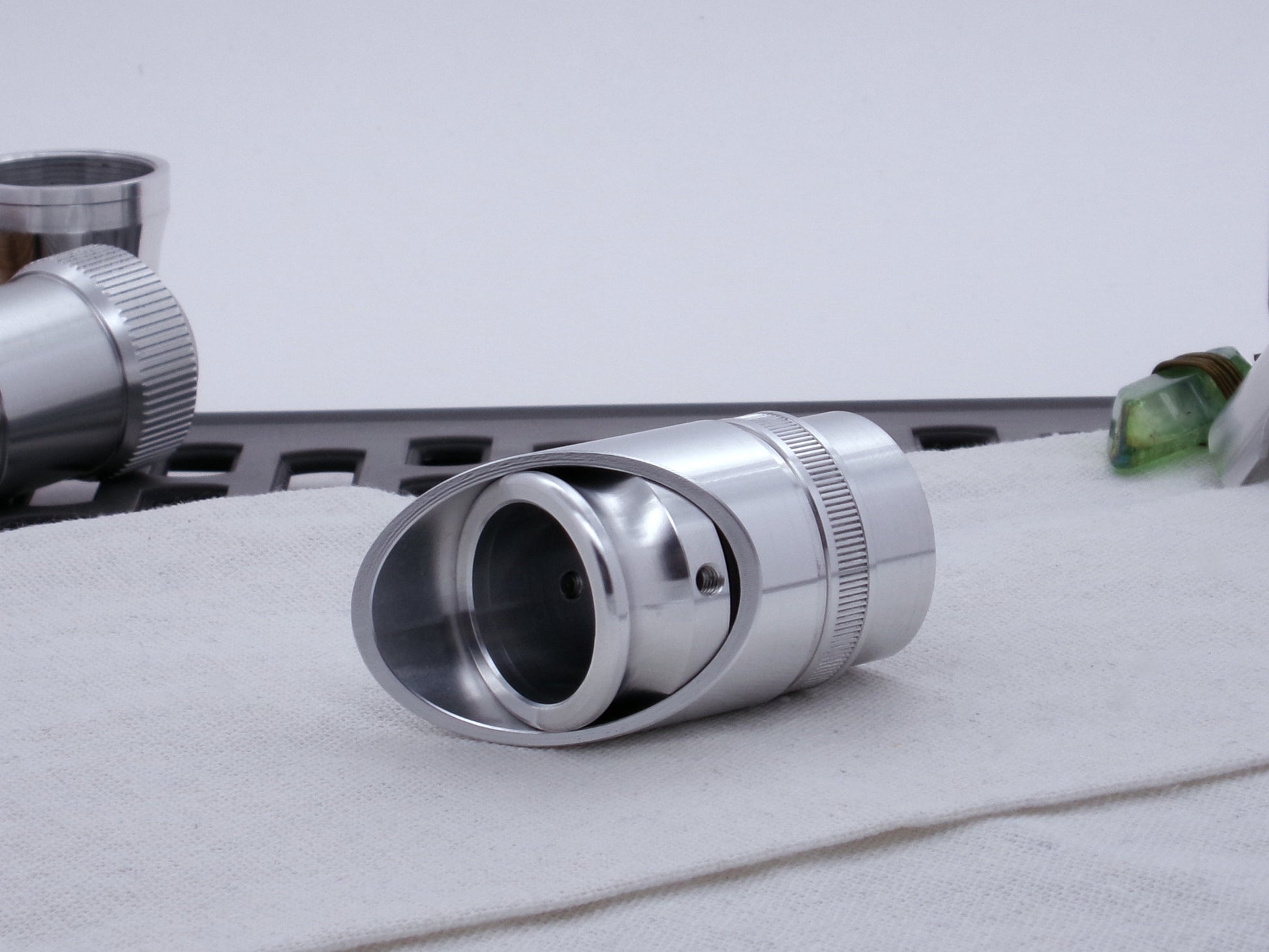 Manufactured from 6061-T6 aluminum, this 45 degree cut Darth Vader-inspired Emitter Shroud surely looks the part! Channeling the Original Trilogy prop design, this component is modeled off the original Micro Precision Products flash gun shroud, but scaled to fit the Variable Hilt Component (VHC) System! The keyed lower mount surface locks into the MPP-M Accent Ring to complete the Dark Lord vibe!